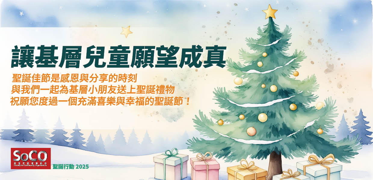 聖誕行動需要個人及機構夥伴的參與,請電郵soco@soco.org.hk與我們商討成為贊助夥伴