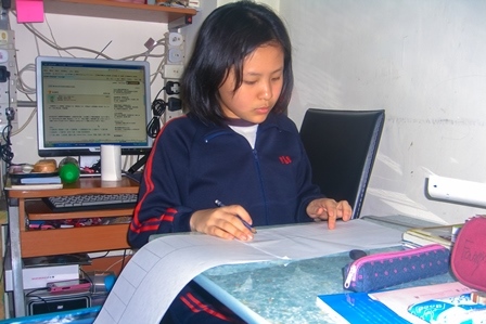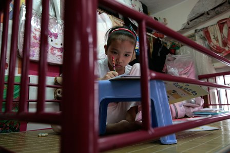 Natalie sometimes feels helpless. Whether it is breakfast, lunch, dinner or watching television or doing homework, she only has room to "stay in bed from day to night". However, this upper deck of two and a half feet by six feet is the small world where she also finds her dreams. Every night, after finishing her homework, she strings beads, which requires good eyesight and patience. She feels very happy each time she finishes a bracelet "because there is a sense of achievement and it is very beautiful". Her dream is to become a jewellery designer.