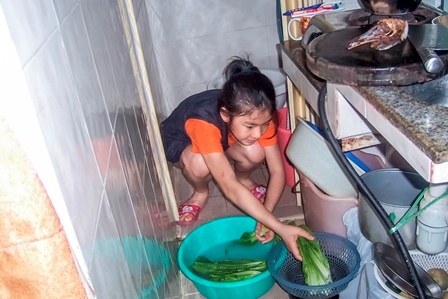 Tsz-ho is only a primary school student, but he is more mature than children of a similar age; he has already learnt how to cook and do laundry. Later, his mother was permitted to emigrate from the mainland and she now works as a porter. Tsz-ho explains, "My Mom goes to work every day. Sometimes she still hasn't got off when I go to bed. She does not earn much, so I have to be careful with money." They live in a squatter hut in Kau Wa Keng in Lai King. According to Tsz-ho, their home is as hot as a food steamer in summer.