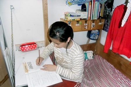 However, it is not easy to study. This interview takes place in Chi-fai's home, but rather than calling it a home, it is actually a room with two bunk beds. There is no television or computer and, as Chi-fai says, "there is not even a table". So, there is limited space to study. I wanted to suggest that Chi-fai could watch English TV more often to improve his English, which is his weakest subject. However, I realized it is very difficult for him to do so.
